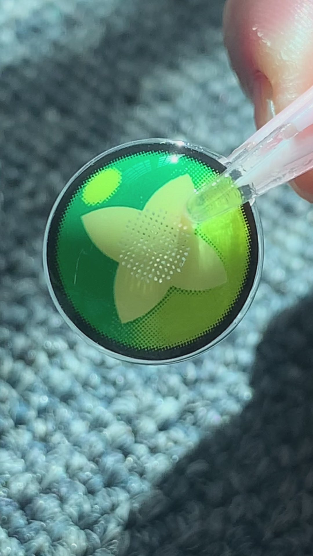 Drumroll**... It's Nahida from Sumeru! This colored contact lens is designed with four leaf clover on green gradient as background from top to bottom, which perfectly matches the original game character. In additional, mesh pupil hole is designed in the middle that allows certain vision. You can use Nahida's colored contact lens for studio photography without any problem. And the best is: It is a weighted contact lens, which spinning / rotation of the lens is minimized!